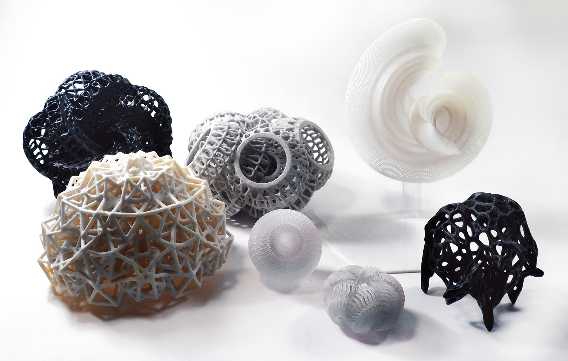 At its heart lie multiple digitally fabricated sculptures, referred to by Buyukberber as "Transcendent Objects." These creations suggest a presence from a superior dimension, manifesting in our 3D reality as intricate geometrical structures. Enhanced by the integration of Vive trackers, these sculptures transform the interactive experience: what one grasps physically morphs into an enveloping space in the virtual domain.